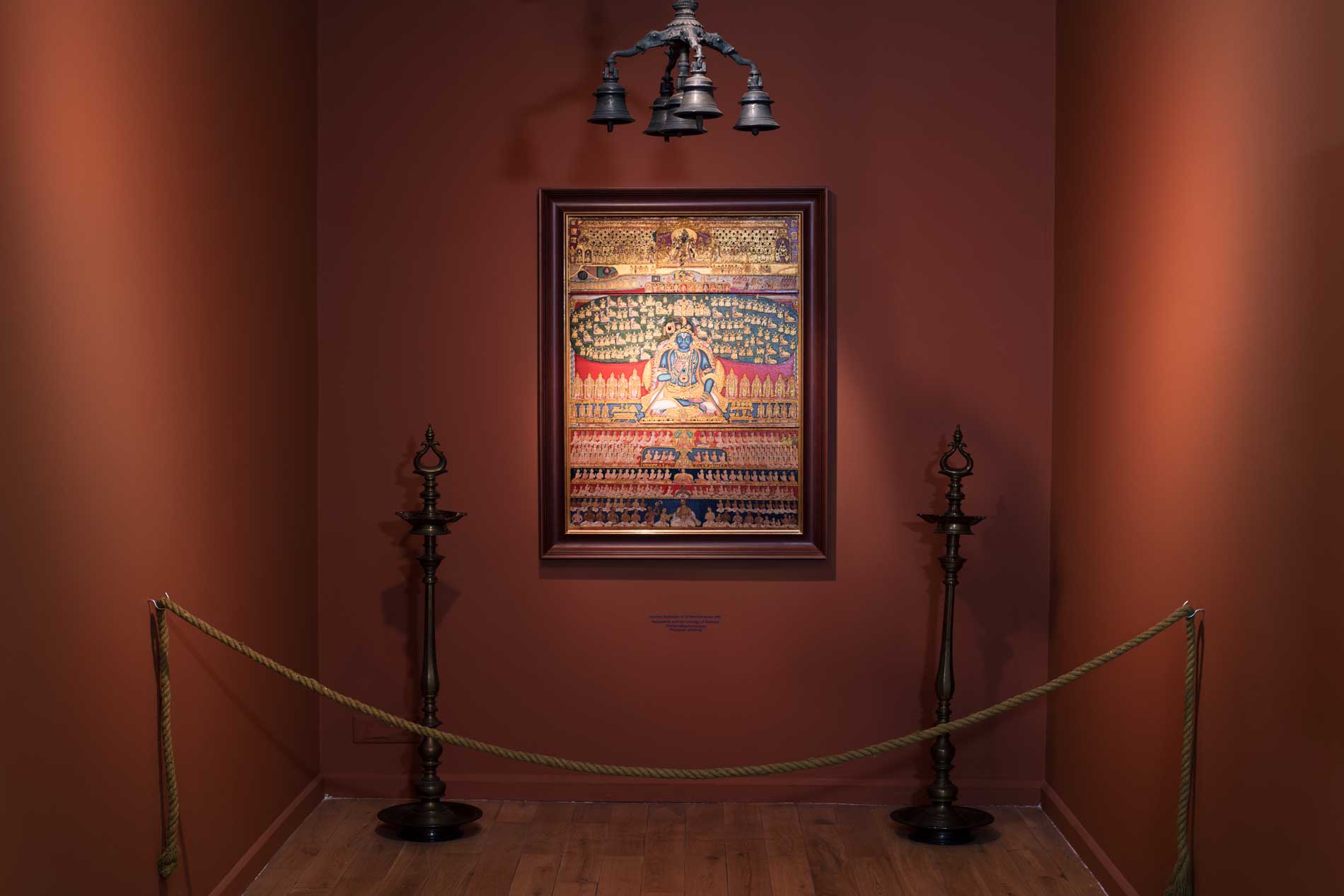 The month-long special exhibition ‘Amruta kalasha’ brings to public viewing for the first time a rare collection of 19th and early 20th century paintings from Thanjavur, Mysore, Andhra, and Kerala. Acquired gradually with discernment over a period of five decades by architect and town planner Kuldip Singh, this extraordinary collection of 200 paintings celebrates his passion and deep engagement which started alongside his work trips to South India in 1973. The rich tradition and content of these paintings introduce an exciting bind of rituals, mythologies, iconographies, connecting the deities, devotees and the donors, within the architectural setting of temples and other sites.