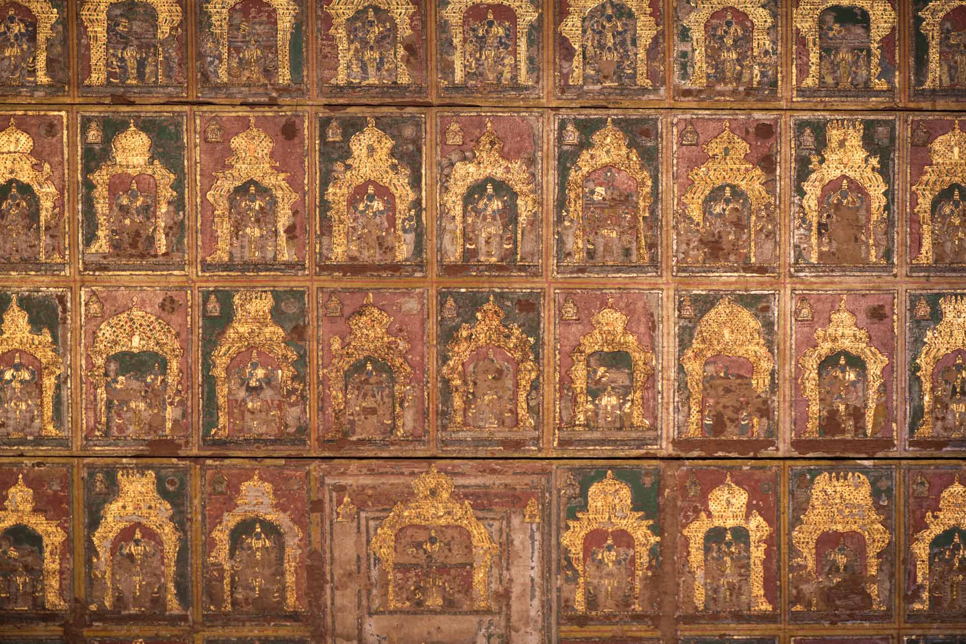Kuldip Singh further explains the nuances of the paintings from his collection, ‘Thanjavur painting encompass Hinduism’s three sacred entities in a single graphic frame viz. the sthala, the place where the deity manifests itself to the devotees, the temple precinct, i.e. the architectural complex of sacred shrines linked by parikaramas and the dhruva bhera, the immovable image, i.e. the deity enshrined in the garbha griha. The notion of sthala, place, is fundamental to the concept of Bharat, India, as a sacred geographic entity. The concept implies an imagined cultural landscape of rivers, mountains, forests, seashores and lakes where mythic persona are believed to have either manifested themselves or performed historic miracles. These locations known as Sthals are by popular usage now unified by a network of functional routes. The temple shikhara is an object of worship as it shelters the divine murti, while the murti itself embodies the attributes/potentialities of an all-pervasive, all-powerful god. Thus, inspired by the myths connected with the sthala, the temple and the deity enshrined within, the Thanjavur artist aspires to transmute their inner meanings into a composite whole.’