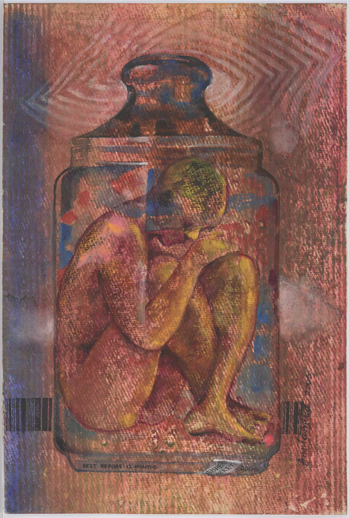 Sinister and enigmatic, Anupam’s compositions are presented in the manner of a puzzle or a game governed by the logic of speculation and sheer chance. Word puns and visual clues in the form of half-open chest of drawers, half-visible words, stumbling dice, broken grid, or headless torsos are important in the staging and decoding of her stories. Despite being figurative and exhibiting a great formal coherence, her works disrupt narration or elucidation, opting for a suspended closure.