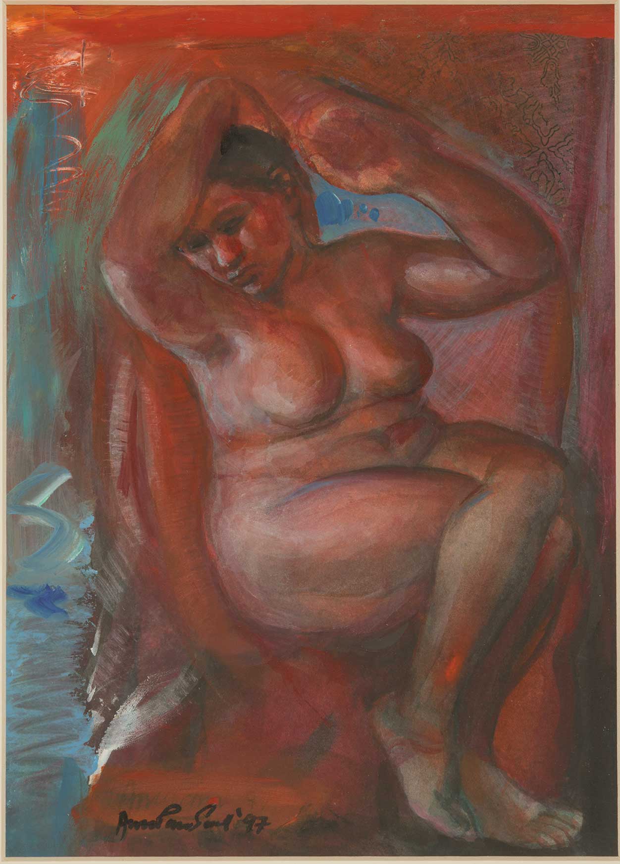 In her five decades of art practice, she participated in numerous group and solo shows across the globe including her first major solo exhibition - Graphics and Drawings: 1971-89 in Art Heritage, New Delhi; her first retrospective Transgression in Prints: Anupam Sud, Four Decades at Palette Art Gallery, New Delhi; and the major retrospective The Soul (Un)Gendered organised by Delhi Art Gallery, New York in collaboration with Kiran Nadar Museum of Art in 2019-20. Sud is the recipient of numerous awards and fellowships including the British Council Scholarship (1971), the President of India’s Gold Medal (1973), Sahitya Kala Parishad Award (1976, 1980, 1984, 1992, 1993), study and travelling fellowship in printmaking at the Centre for International Contemporary Art (CICA), New York granted by the Alkazi Foundation (1990), Charles Wallace Research Grant (1998) among others. Sud currently resides and practices in Delhi.
