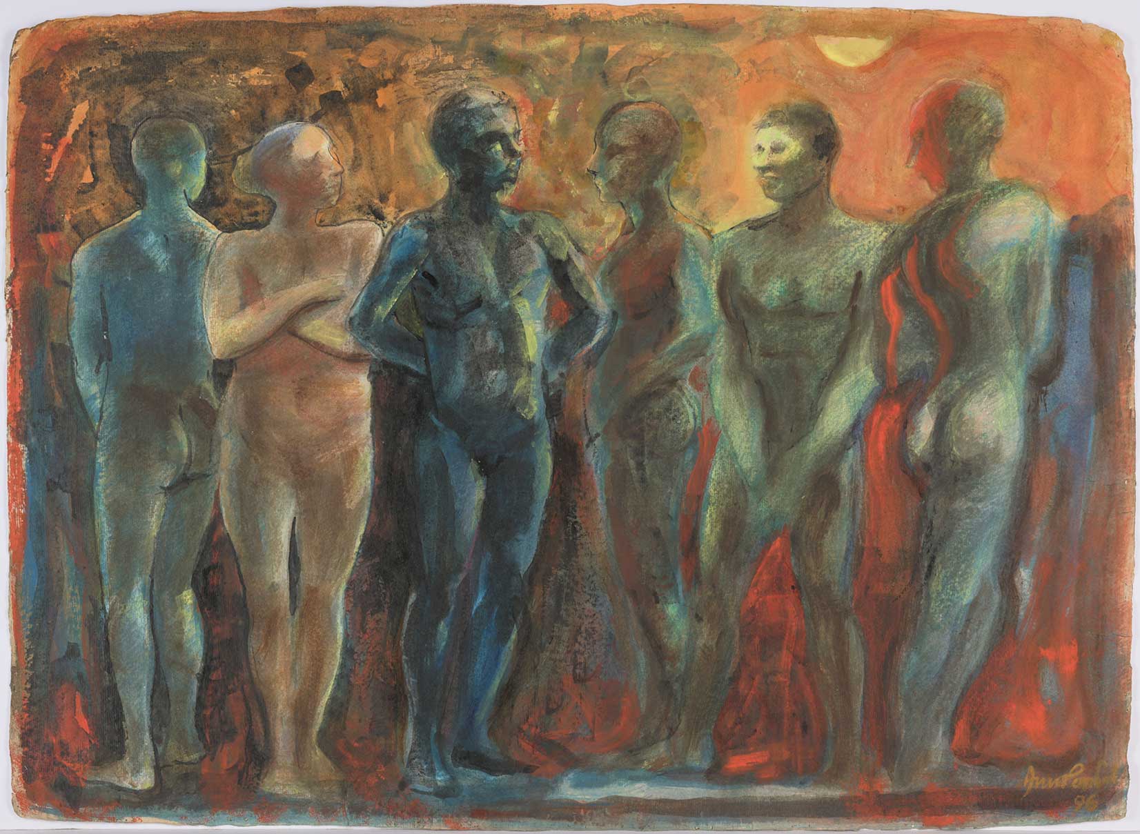 Working daily for over five decades now, Anupam Sud’s artistic oeuvre defies any easy classification due to the sheer volume and diversity of her practice. She is perhaps one of the most distinguished Indian artists, especially with her contribution to printmaking and her sustained enquiry into the human form and its existential predicaments. A committed artist, she has also been a compassionate teacher, an inspiration to generations of students. Anupam was encouraged by the attention given to her work by Somnath Hore (who was brought into Delhi to set up a printmaking department at the College of Art) and later, by her teacher Jagmohan Chopra (founder of Group 8, the first collective of Indian printmakers). Silently and slowly subverting the archaic notions of male supremacy and puritan idioms of modernism, she evolved a pictorial language stamped with her idiosyncratic vision, marking her vantage point, soon after returning from the Slade School of Fine Art, London, in 1973.
