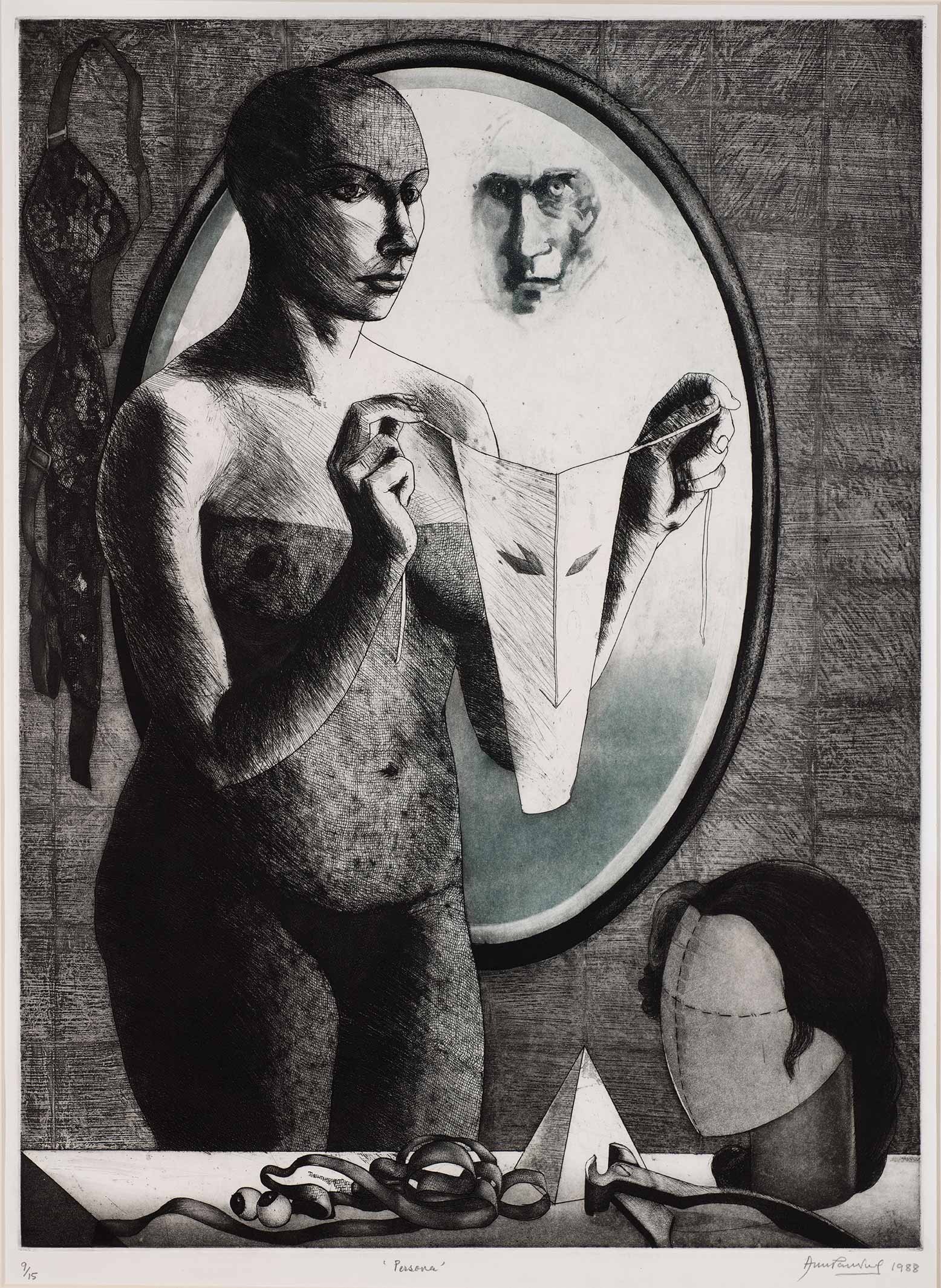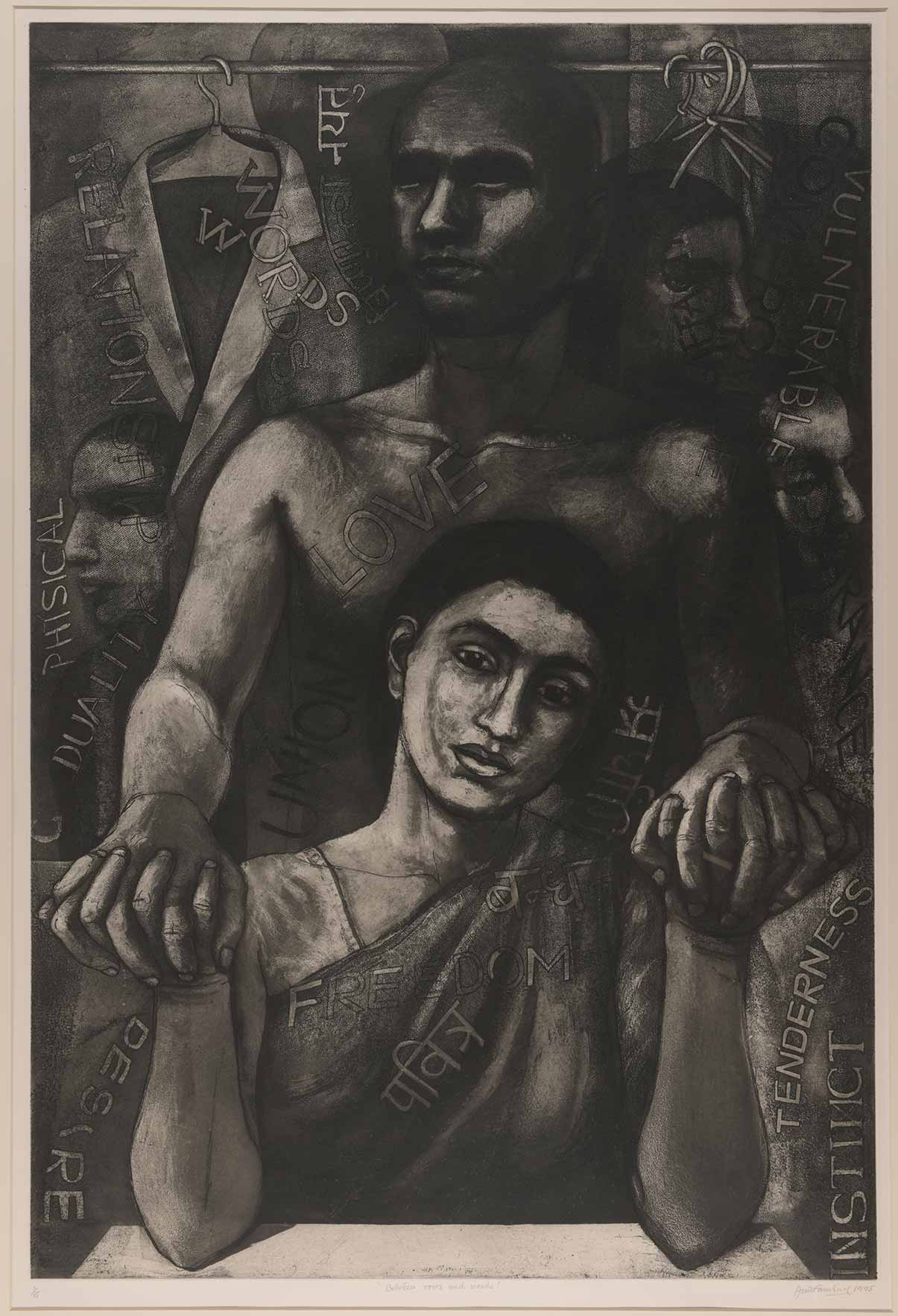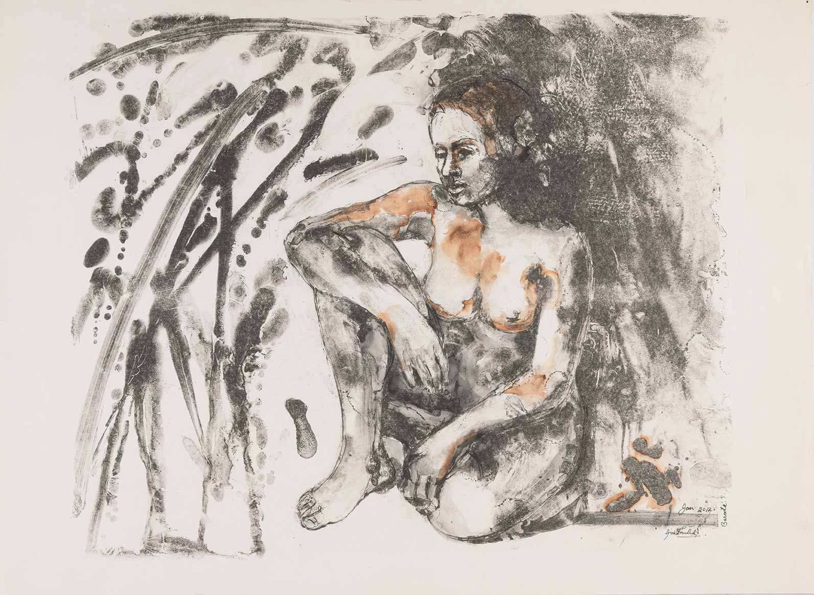 Working daily for over five decades now, Anupam Sud’s artistic oeuvre defies any easy classification due to the sheer volume and diversity of her practice. She is perhaps one of the most distinguished Indian artists, especially with her contribution to printmaking and her sustained enquiry into the human form and its existential predicaments. A committed artist, she has also been a compassionate teacher, an inspiration to generations of students. Anupam was encouraged by the attention given to her work by Somnath Hore (who was brought into Delhi to set up a printmaking department at the College of Art) and later, by her teacher Jagmohan Chopra (founder of Group 8, the first collective of Indian printmakers). Silently and slowly subverting the archaic notions of male supremacy and puritan idioms of modernism, she evolved a pictorial language stamped with her idiosyncratic vision, marking her vantage point, soon after returning from the Slade School of Fine Art, London, in 1973.