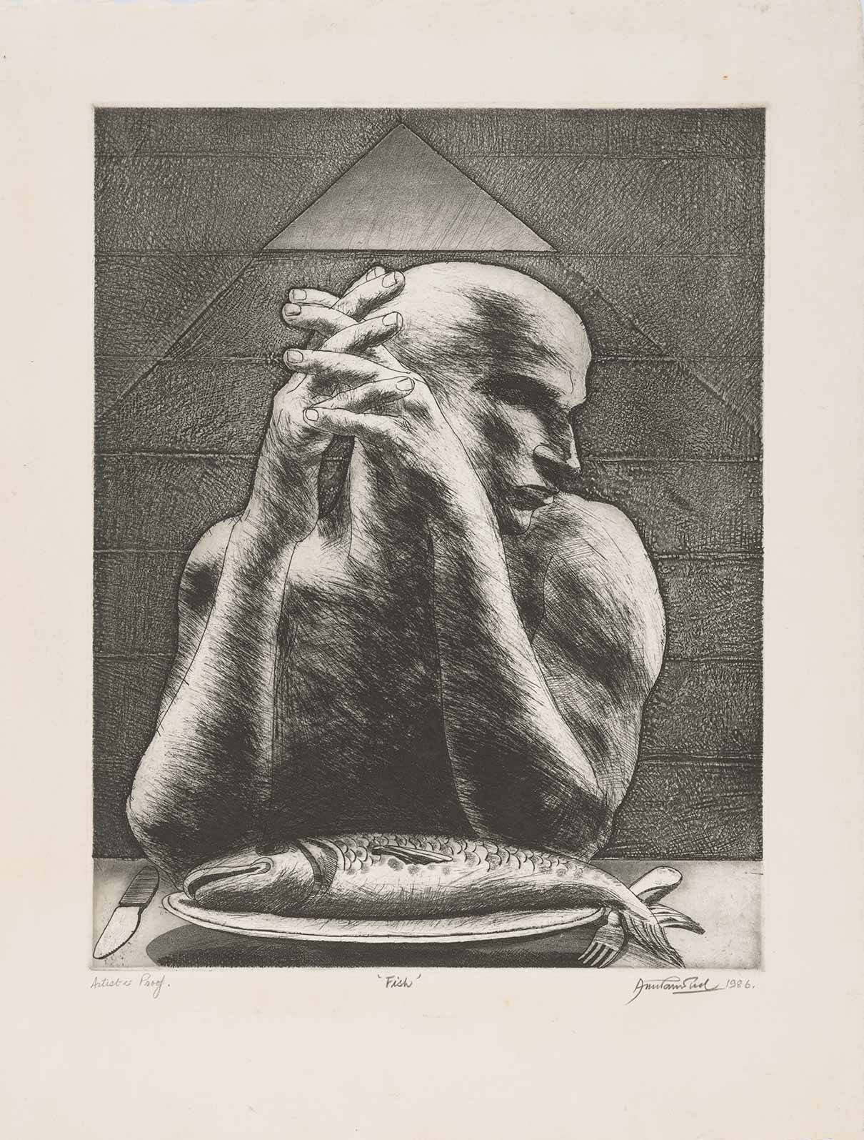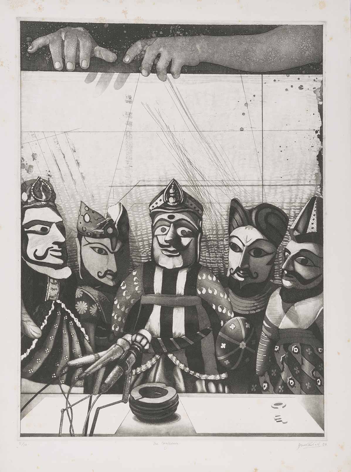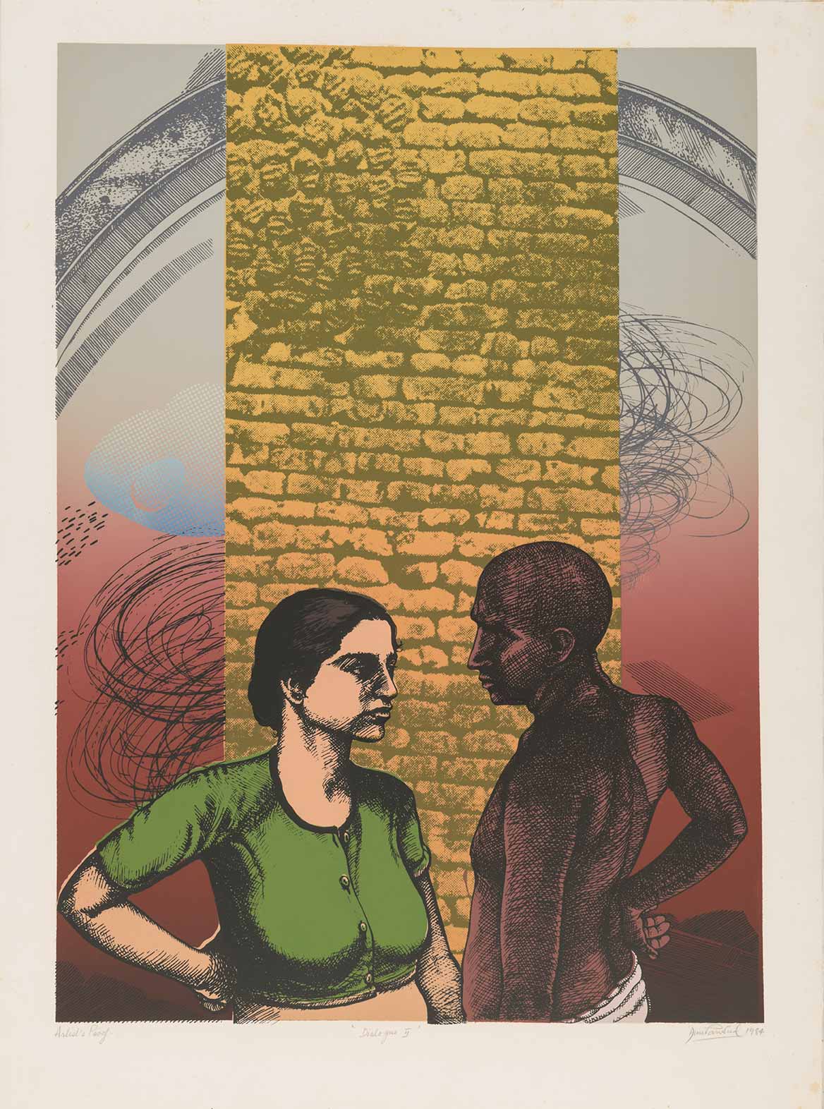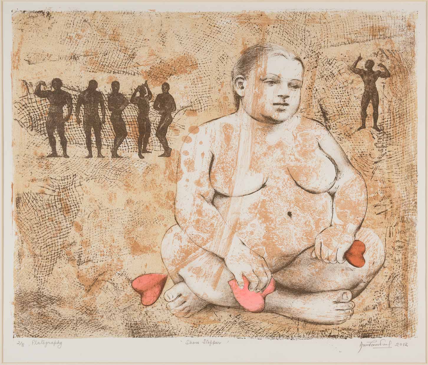 Working daily for over five decades now, Anupam Sud’s artistic oeuvre defies any easy classification due to the sheer volume and diversity of her practice. She is perhaps one of the most distinguished Indian artists, especially with her contribution to printmaking and her sustained enquiry into the human form and its existential predicaments. A committed artist, she has also been a compassionate teacher, an inspiration to generations of students. Anupam was encouraged by the attention given to her work by Somnath Hore (who was brought into Delhi to set up a printmaking department at the College of Art) and later, by her teacher Jagmohan Chopra (founder of Group 8, the first collective of Indian printmakers). Silently and slowly subverting the archaic notions of male supremacy and puritan idioms of modernism, she evolved a pictorial language stamped with her idiosyncratic vision, marking her vantage point, soon after returning from the Slade School of Fine Art, London, in 1973.