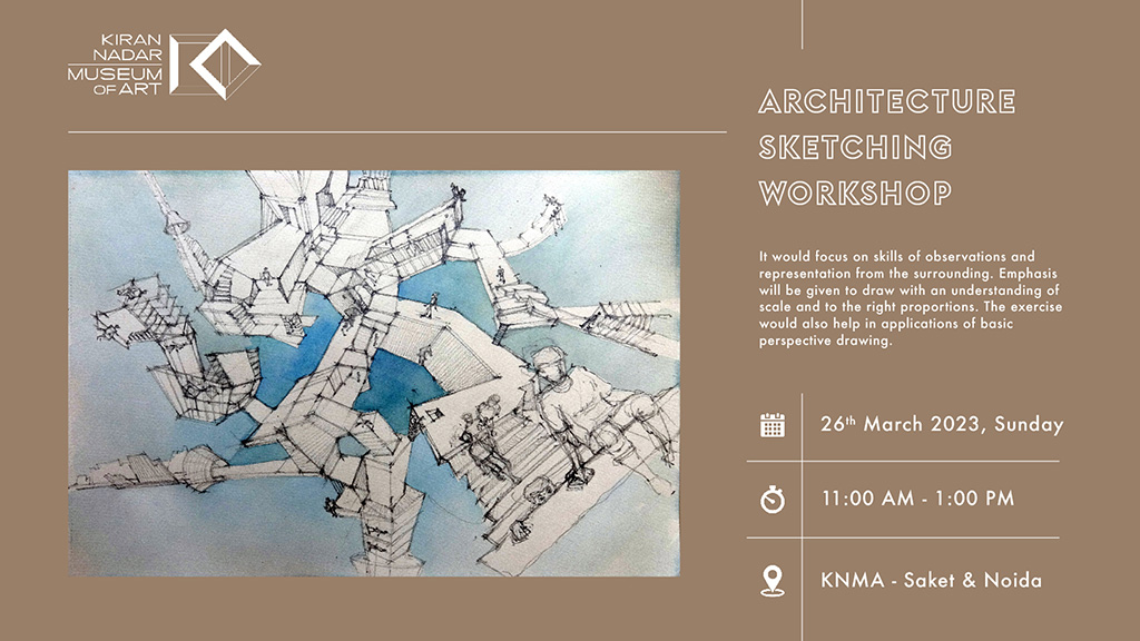 Architectural Sketching workshop would focus on skills of observations and representation from the surrounding. Emphasis will be given to draw with an understanding of scale and to the right proportions. The exercise would also help in applications of basic perspective drawing. The workshop would help the participants to improve the quality of lines and gain more confidence in realistic views of a building or its interiors.