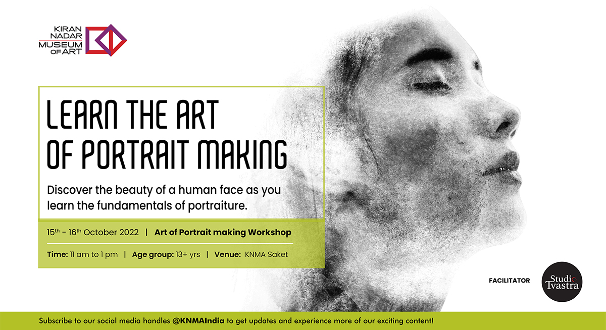 Kiran Nadar Museum of Art, in collaboration with Studio Tvastra, presents an Art of Portrait Making workshop. Portrait painting is a painting genre that depicts a specific human subject. A good portrait is more than just a visual representation of a person; it also reveals something about that person's essence.