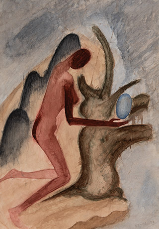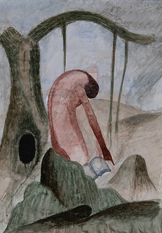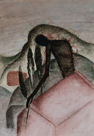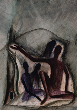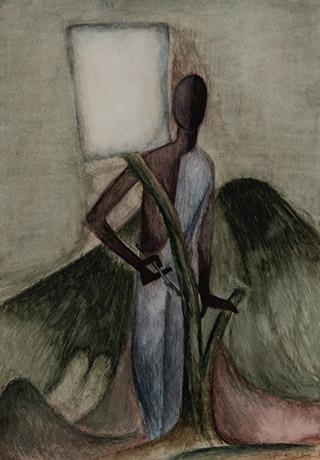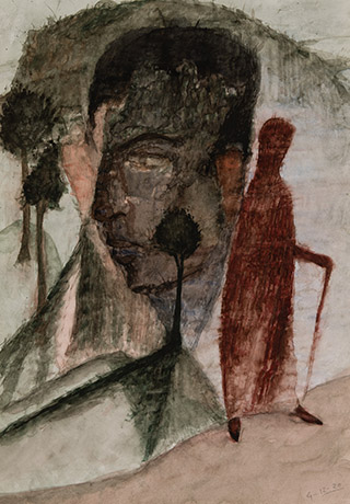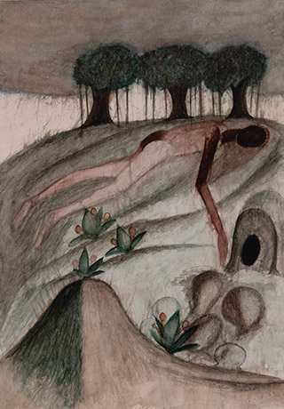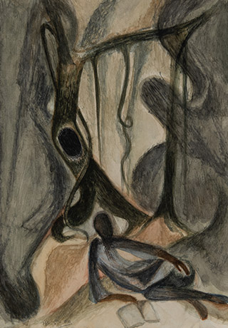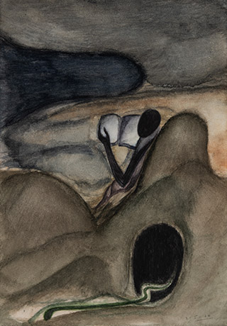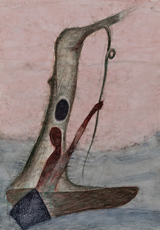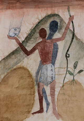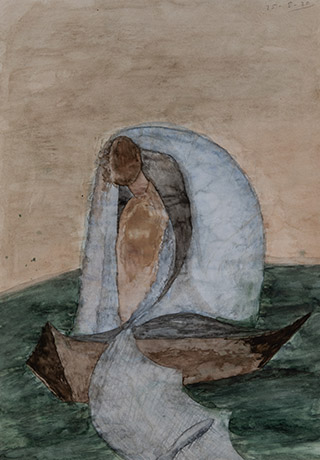 Dodiya returns to primal, basic elements and forms, immersing himself in the creative play between innocence and imagination, addressing nature and its cathartic forces, and perhaps too the solitary figure of an artist’s long-overdue conversation with himself. Confessional at times, evoking Christ’s words in the Garden of Gethsemane or other mythologies associated with the miraculous acts of divine beings, the human figure is caught in moments of self-absorption, retreat and freedom, filled with awe at the infinite stretching of the universe in time and space. In the elevating forms, leisurely moments and acts of being borne on the tide of the unknown, Dodiya reiterates the irrepressible desire for life and perhaps a new dawning of its purpose.