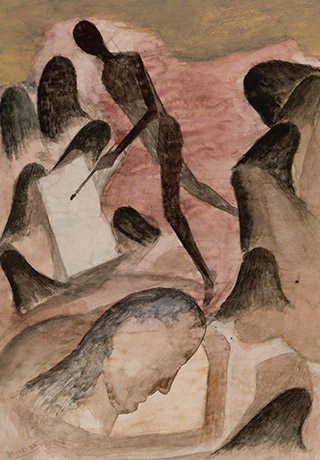 Having mastered several artistic mediums and techniques, Dodiya here expresses a loosening of the mind and brush, oscillating between a precise stain and an amorphous mass, embarking on a mysterious adventure, contorting and abstracting nature-elements and the human body. All of these acts thereby suspend the conscious need for perfection and intention.