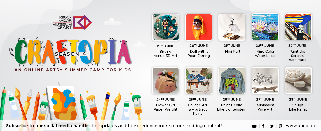 The Kiran Nadar Museum of Art (KNMA) presents Craftopia Season 4 - An Online Artsy Summer Camp for Kids. Keeping in mind health and safety concerns, KNMA will be holding its popular art camp online this summer. This year the camp will focus on the history of art movements mixing interesting historic titbits, with DIYs and crafts to go along. The session will delve into Renaissance Art, Impressionist Art, Contemporary Art and much more. Each episode will feature an art project inspired by an artist from that particular movement, it will use elements of the style discussed and guide children to create homemade interpretations.