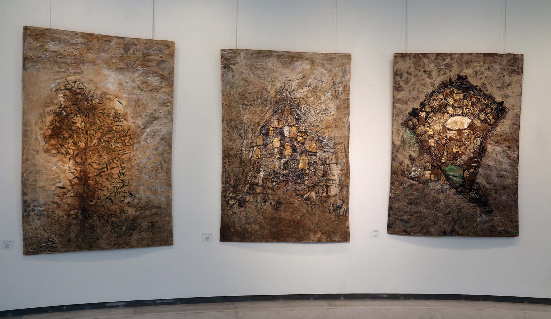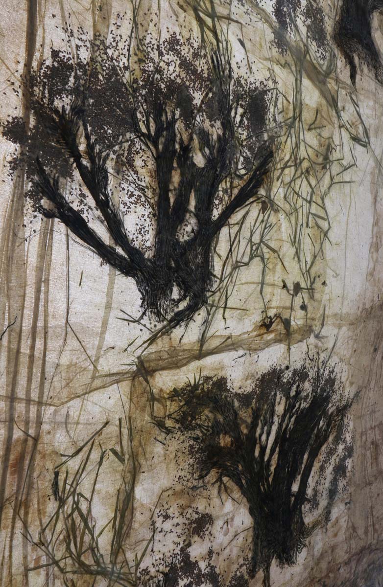 Her recent soaring installations with long suspended scrolls have nature as both subject and material. Instantly, we seem to encounter a maze created out of an overlay of painted and woven imagery, interlaced and secured between the skeins/skins of pasted paper and fabric. A closer look reveals petals, dry leaves, seeds, stems, roots and plant-remnants embedded into her multi-layered creations that cannot be experienced from any single vantage point. In contemporary times, where industrial materials and technology have opened up possibilities of more varied artistic and conceptual conquests, Jayashree’s hand-made organic forms point at the need to be closer to nature, seeking ways recuperating to recover the self and the world we live in. Through a poetic evocation in her recent exhibition titled ‘Life will never be the same’, Jayashree encapsulates many overlapping emotions and personal experiences. She acknowledges the inevitability of constant change, fundamental to life, and yet she accentuates the lamenting tone pushing forward the potency of the phrase, as if pained by an irreconcilable loss. Simultaneously she expresses a longing to be located in a time and space of a utopian past. Unpretentious and fiercely honest, Jayashree Charkravarty, has raised with utmost humility, the most pertinent question that we must all confront and reflect on– ‘how to live and let live’.