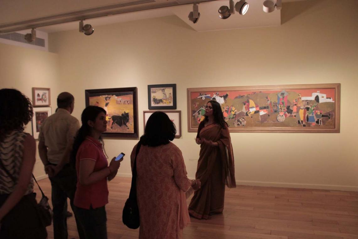 KNMA in collaboration with Intach Delhi Chapter and Heritage Walks hosted a group of visitors from the YES Global Institute. The visitors enjoyed the curated walk-through of the ongoing exhibition STRETCHED TERRAINS, and discussed the life and times of artists MF Husain, SH Raza and FN Souza. The central points of engagement were the works of contemporary artists Parthiv Shah, Pushpamala N, Navjot Altaf, Mithu Sen and Atul Dodiya displayed at the museum, along with marveling at the architectural maquettes, especially of the now demolished Hall of Nations from 'Delhi Moderns' exhibition.
