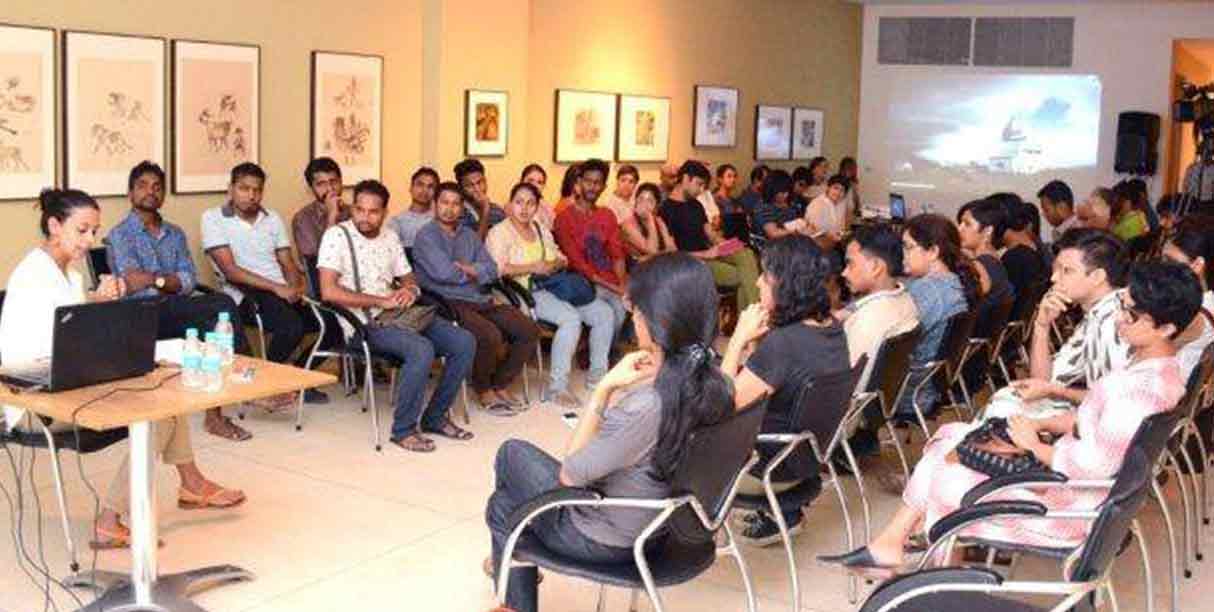 This coup, largely required one to crane one’s neck and contemplate the sky. The guest artist Rohini Devasher, a visual artist and an amateur astronomer who dabbles in looking, seeing, observing the “physicality of field and sight” introduced her practice through four keywords: Field, Observation, Recording, and Speculation. The conversation began with the gathering made to hear her recorded sound piece, titled ‘Shadow Walkers’ in which amateur astronomers describe their experiences of witnessing a full solar eclipse.