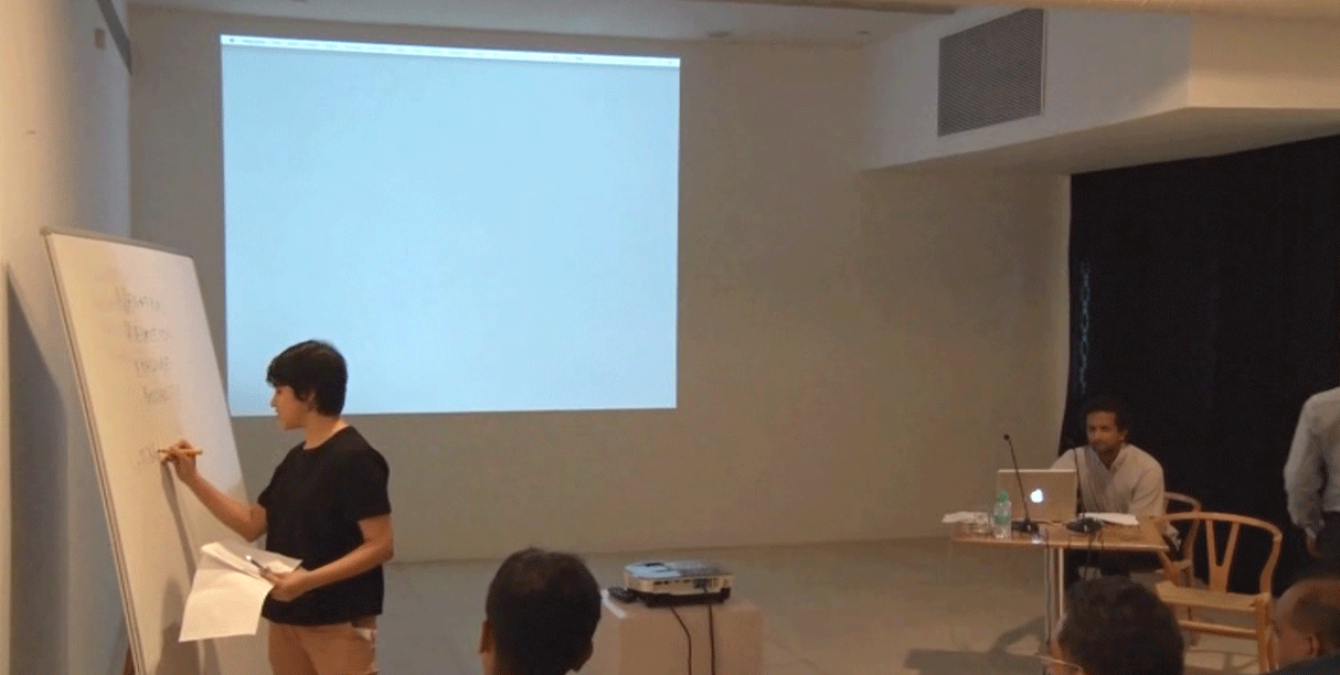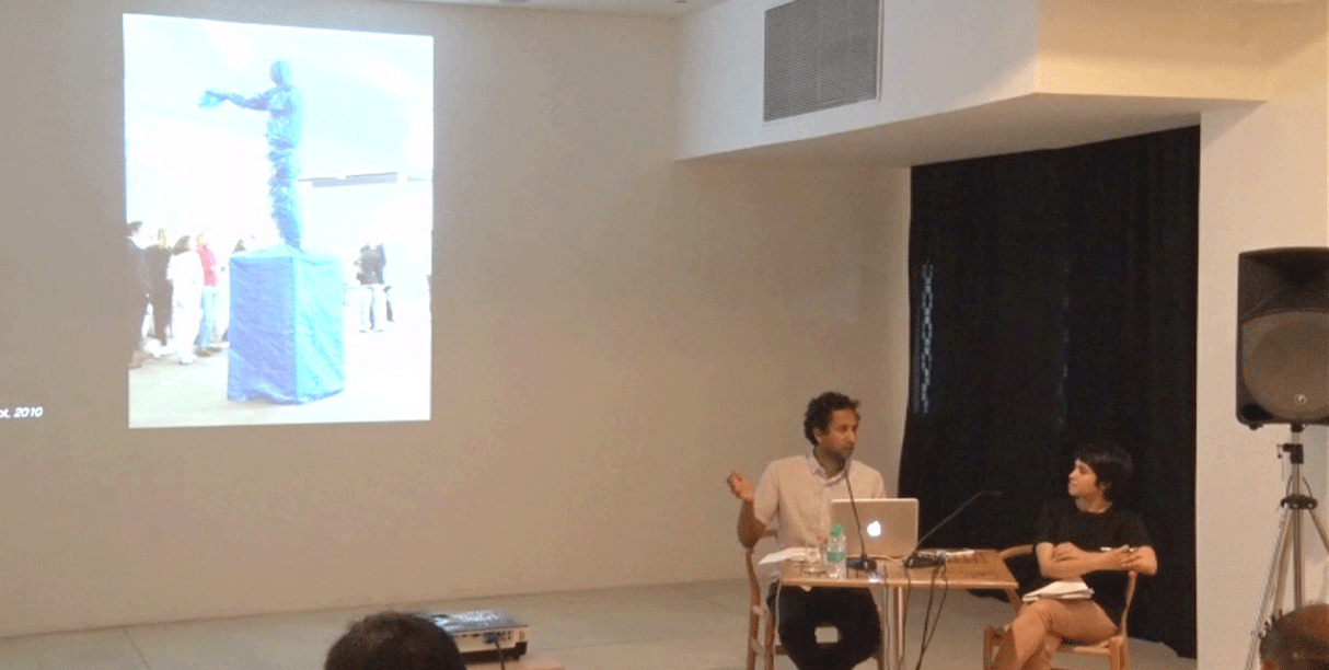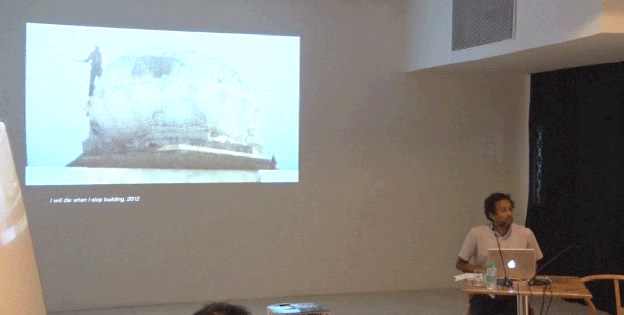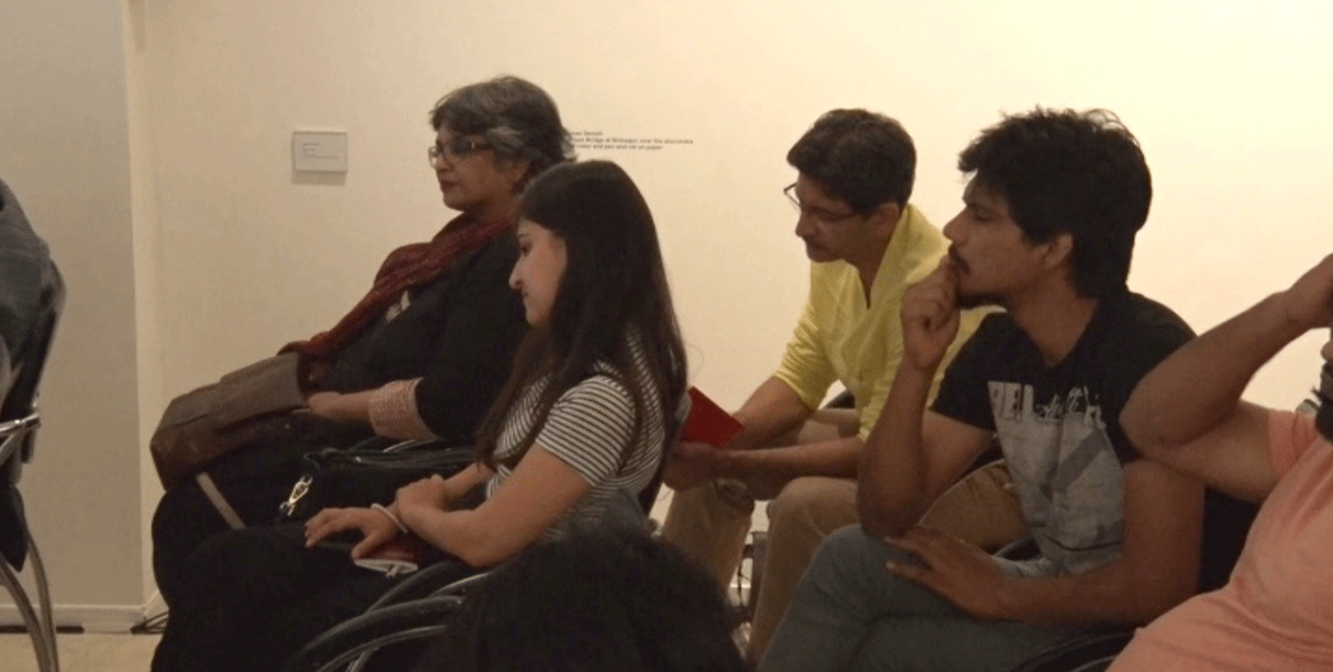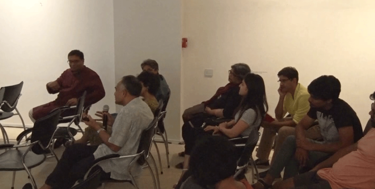 KNMA was host to an evening of contemplating the first coup with Sreshta Rit Premnath, the co-founder of Shifter Magazine, and Assistant Professor at Parsons, New York. In the light of his past works, he elaborated on the quintessential absences in the world around him and his art. Sreshtha Rit Premnath catapulted us into a chain of four keywords: Negation, Redaction, Erasure, and Possibility. Quoting and working with examples of disappearances, of cargo ships, public statues, exhibitions, among other things, he put forth unique but political positions of temporary occupation of land through repose and rest with the figure of a migrant labourer seen squatting, and dogs sleeping in public spaces. He spoke of his fancy for the emptiness of the bright green backgrounds used to digitally manipulate images. Ruminating poetically through his artworks from 2008, and especially with regards to his work ‘Zero Knot’ (2010) he ended the session with his poem ‘Withdrawn’.