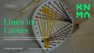 Dive into the curated art engagement at KNMA's Lines in Layers family workshop! Guided by educators, explore the elements of art—line and form- and learn to create something meaningful together. Built unique designs, craft intricate patterns, and connect threads to add depth and rhythm to your masterpiece.