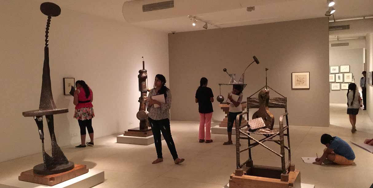 These workshops include an in-depth understanding of color, value and placement of elements to create dynamic and aesthetic compositions. Children are taught the techniques and tools such as design, paint consistency and application as well as a conceptual understanding of themes and ideas to carry out their own explorations.These workshops explore traditional mediums such as painting, drawing, pen and ink as well as various craft techniques. The educators at the KNMA aid kids to traverse through the ancient and traditional practices of art. These varied forms of art have been passed down from one generation to another. Indian folk art is still alive in many parts of the county.