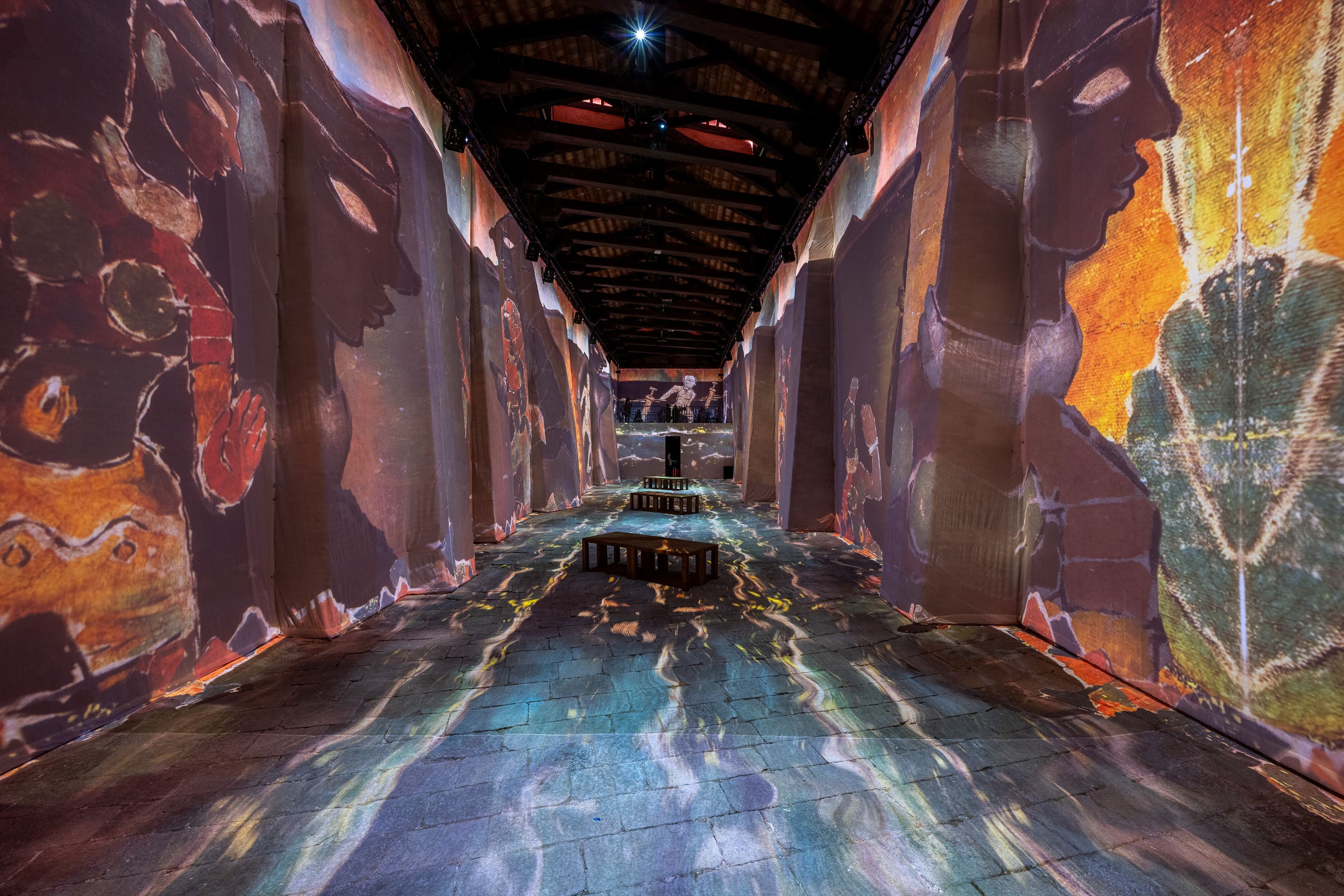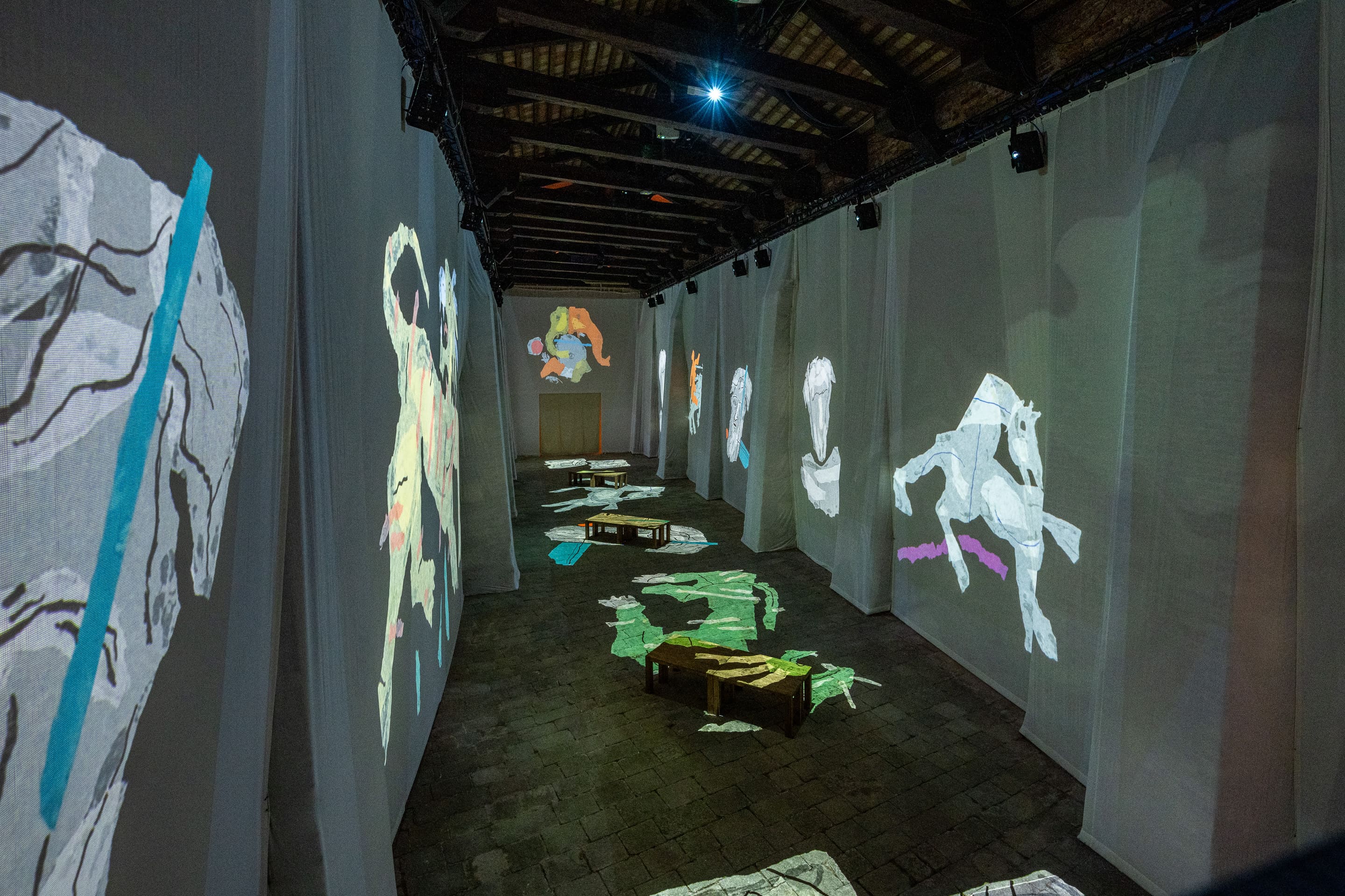 Resonating with the 2024 Venice Biennale’s theme of “Foreigners Everywhere,” the dual format structure of the exhibition with alternating scales, plays out the juxtapositions of the physical and virtual presentation, a navigation between still and moving images, with original artworks leading the viewers into a first-time immersive on the artist.