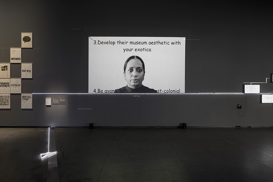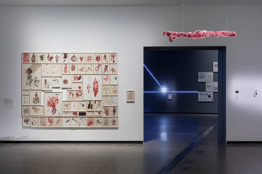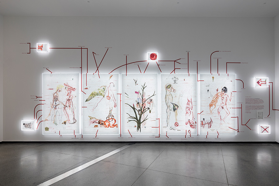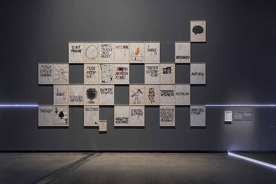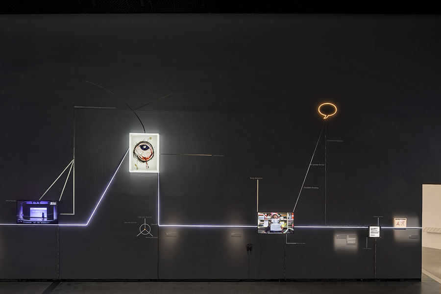 mOTHERTONGUE surveys the past two decades of Mithu Sen’s compelling art practice, including a series of major new installations. The exhibition is presented as an illuminated mind-map. As a constellation of image and word associations which move between visible surfaces and interior states, mOTHERTONGUE charts the ways in which language is channelled into forms as diverse as drawing, sculpture, media and performance to create complex artworks which elude definitional categories, institutional power structures and imposed identities related to race, gender, ethnicity and location.