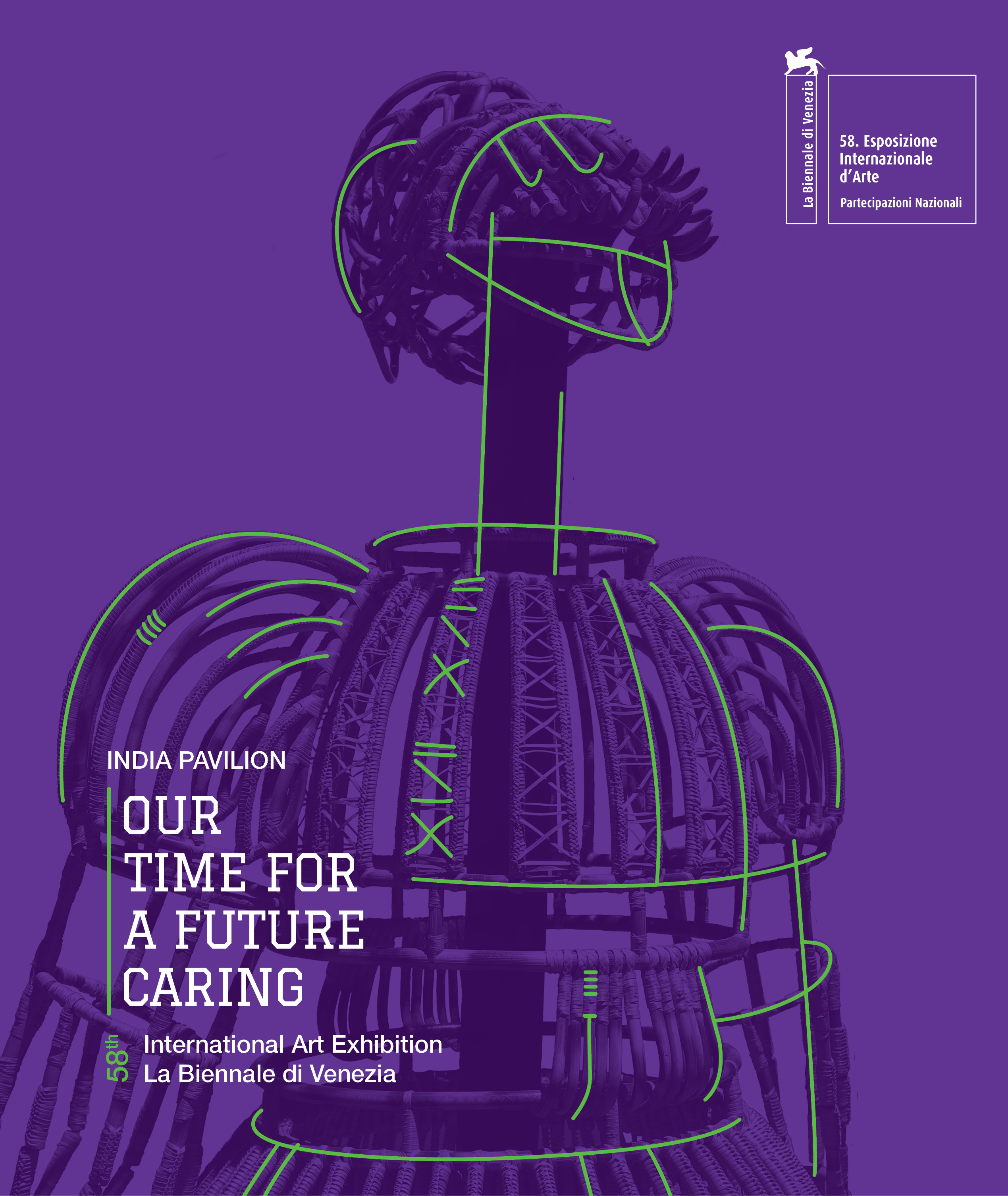 Our Time for a Future Caring book accompanying the India Pavilion exhibition presented at the 58th International Art Exhibition – La Biennale di Venezia from May 8 to November 24, 2019. Organised by the Ministry of Culture, Government of India in collaboration with the Kiran Nadar Museum of Art (KNMA) and Confederation of Indian Industry (CII), and curated by Roobina Karode, India Pavilion marks the 150th birth anniversary of Mahatma Gandhi. It exhibits artworks and projects by an intergenerational mix of eight artists that imaginatively engaged with nation-building as a work in progress and Gandhian ideas on the village republic: Nandalal Bose, MF Husain, Ashim Purkayastha, Atul Dodiya, GR Iranna, Rummana Hussain, Jitish Kallat and Shakuntala Kulkarni.