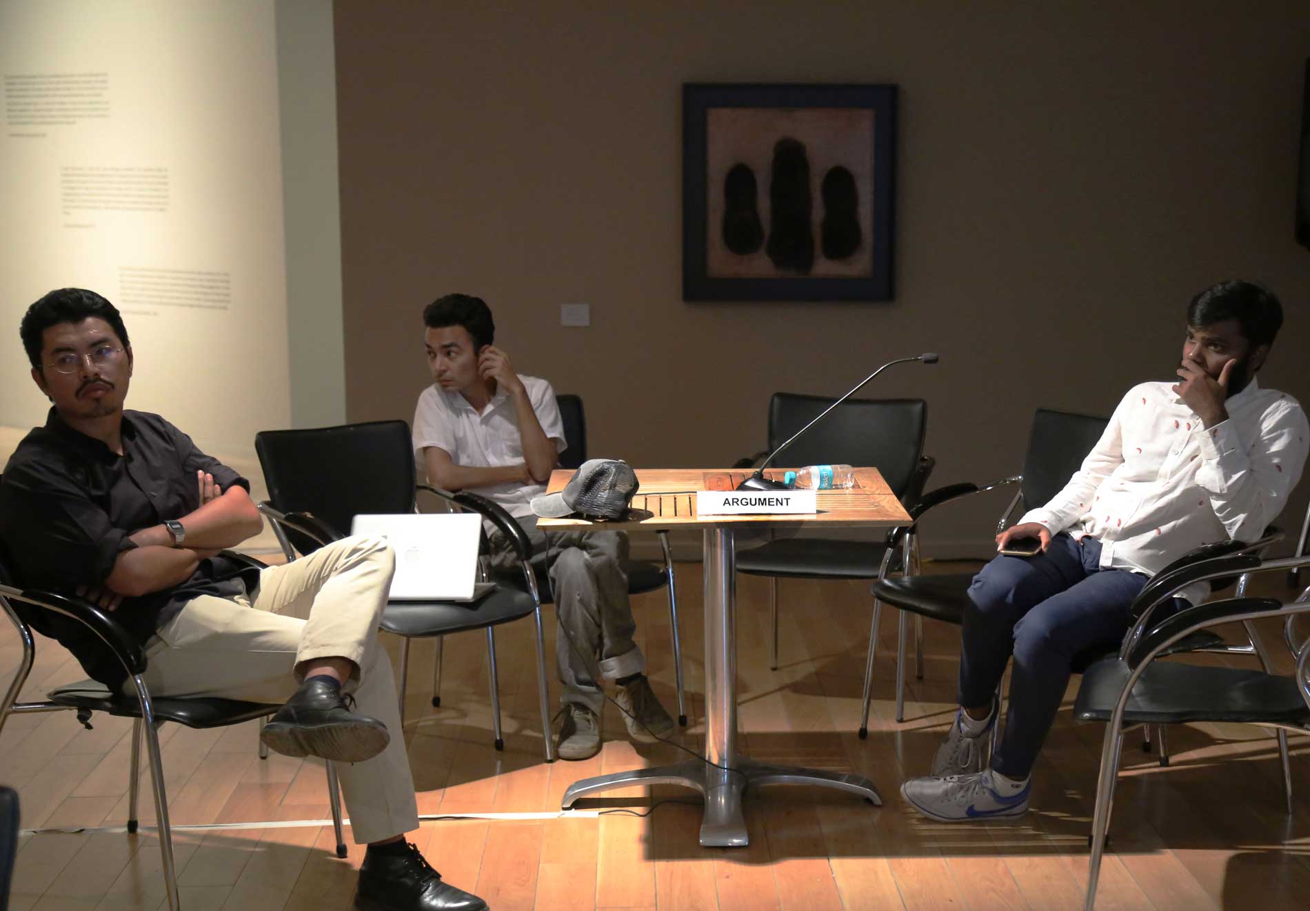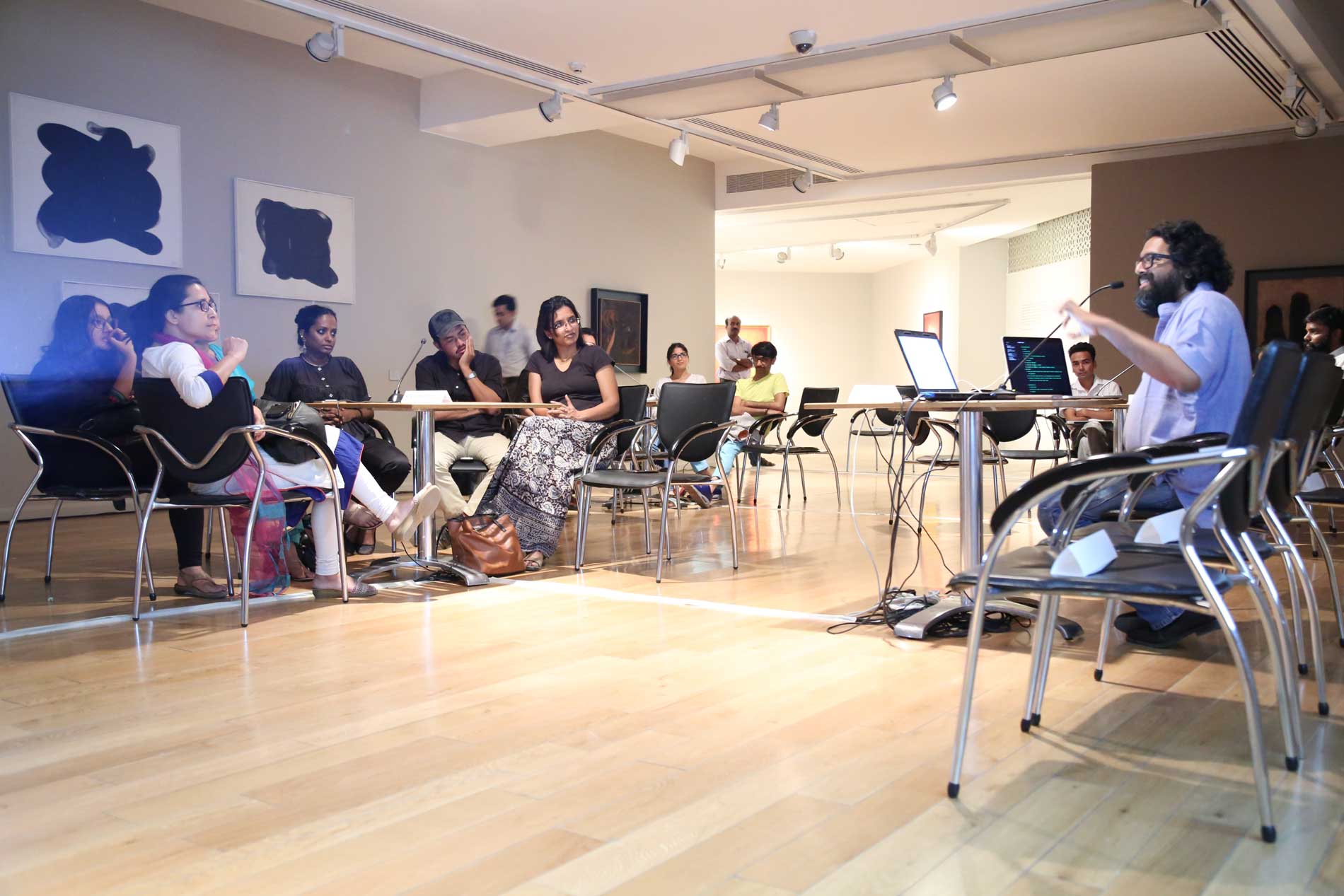 The sixth meet in the series of ‘Invitation for a Coup’ was held with teacher and artist Prayas Abhinav in conversation with the audience in the format of study groups. This format partly replicated his ongoing practice of conducting virtual online study groups over web-based real time group conversations, which he calls ‘Surfatial’. Each group was given positions like Polarity, Non-Confrontation, Discussion, Analogy, and Argument to contextualize their interventions and continuations. This confluence of thought-nodes created a randomness that was akin to a subsistent coup of sorts. Prayas introduced his fictional characters and also went on to introduce his other web based project called The Museum of Vestigial Desires.