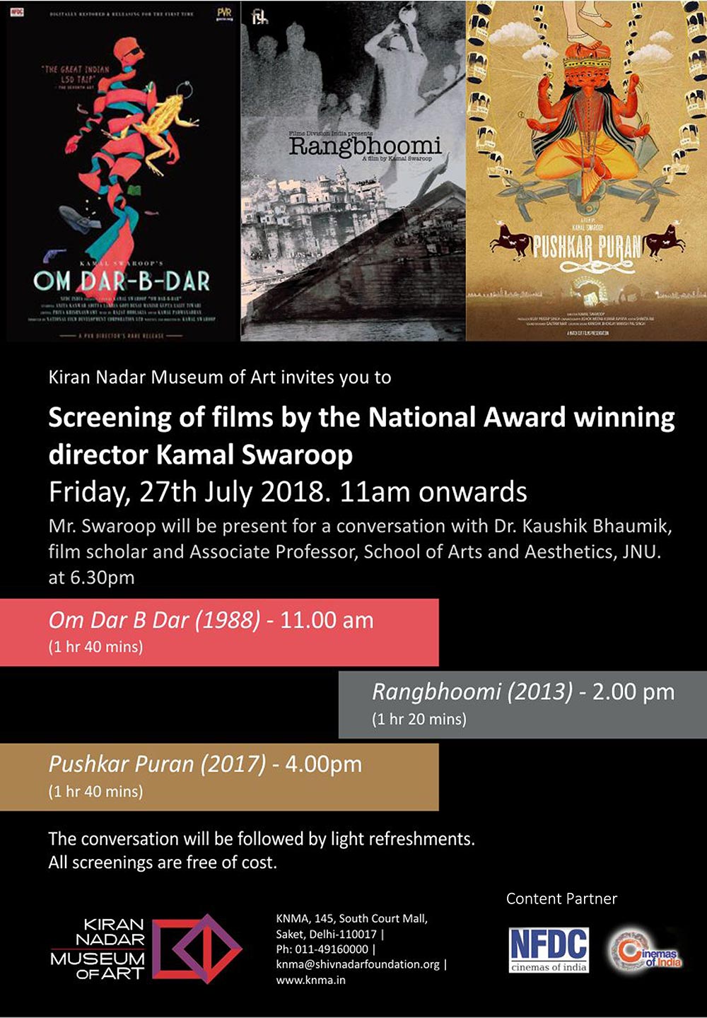 Mr. Swaroop will be present for a conversation with Dr. Kaushik Bhaumik, film scholar and Associate Professor, School of Arts and Aesthetics, JNU. at 6.30pm