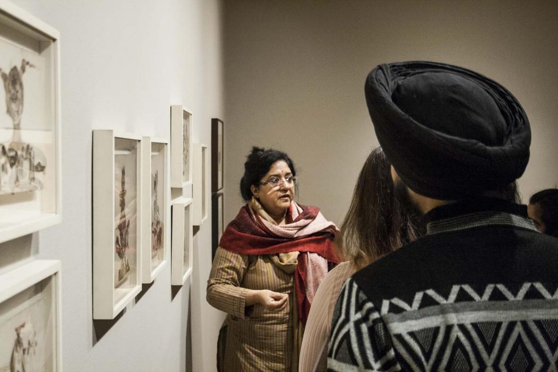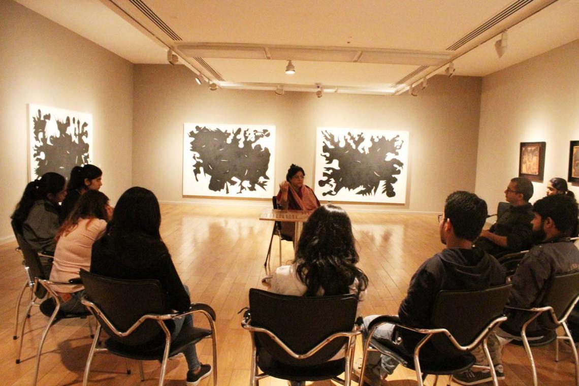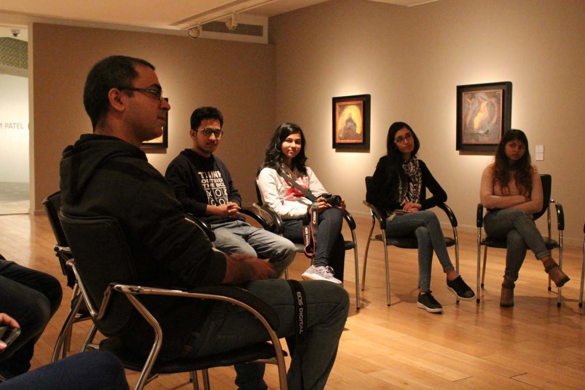The students of School of Planning and Architecture accompanied by their teacher facilitator Mr. Amardeep Labana visited the museum for a field study. A walkthrough of Jeram Patel’s retrospective exhibition and an interactive session with Roobina Karode gave insights to the students in the design and planning of large exhibitions and museum spaces. The culminating workshop invited students to reimagine the Museum building while responding to the exhibition and works they saw.